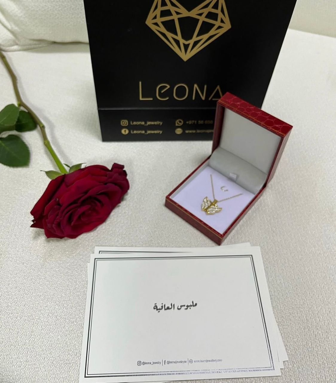قلادة الفراشة الفاخرة 🦋✨ – مع وردة 🌹 ورسالة خاصة 💌 1 2000 د.ج